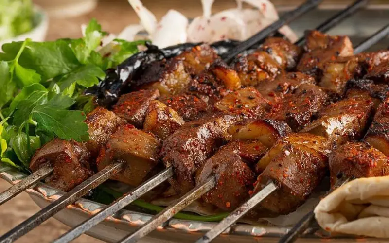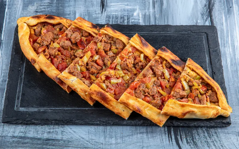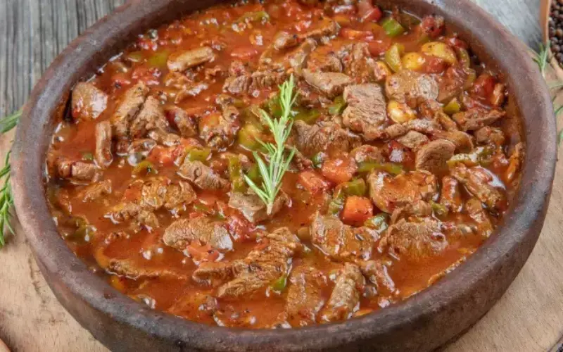 Contents: Meat Casserole + Appetizers + Greens + Bread